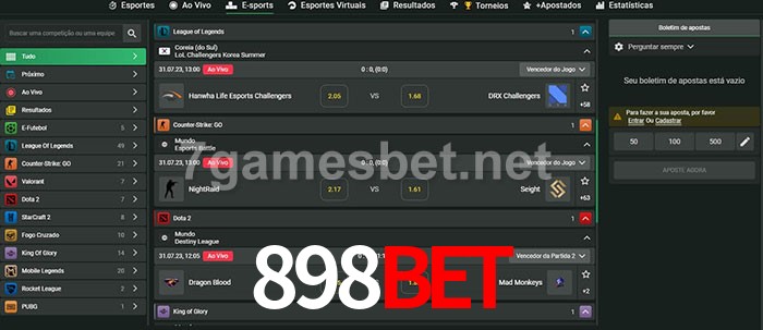 O 898bet oferece uma grande seleção de opções de apostas em e-sports com probabilidades competitivas